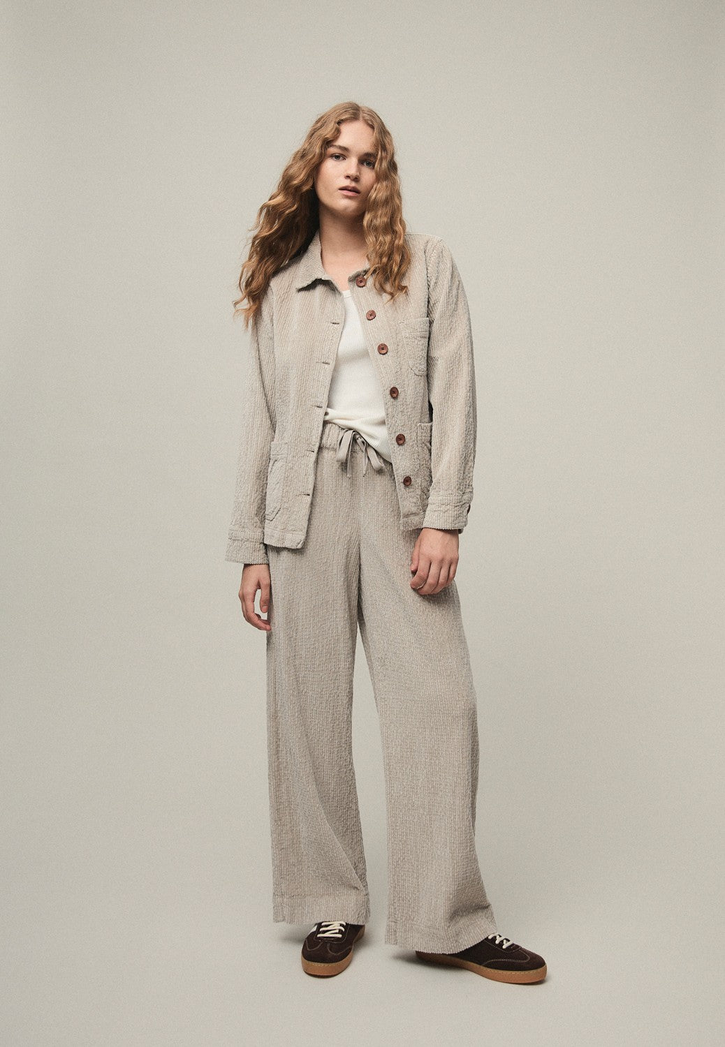 Pantalón ancho de pana irregular. Cinturilla engomada y bolsillos en delantero